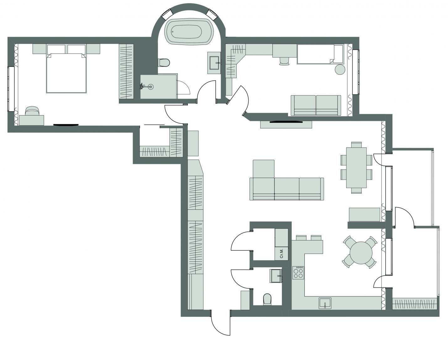 Дизайнерский ремонт, 2 изолированные спальни, просторная кухня и огромная гостиная, 2 санузла, в одном из которых два окна, постирочная, в мастер-спальне обустроена гардеробная. В квартире 2 большие лоджии. Окна выходят на разные стороны: во двор, где находятся малоэтажные строения детский садик и школа и на сквер улицы Гарибальди, таким образом ближайшие дома находятся в значительном удалении.