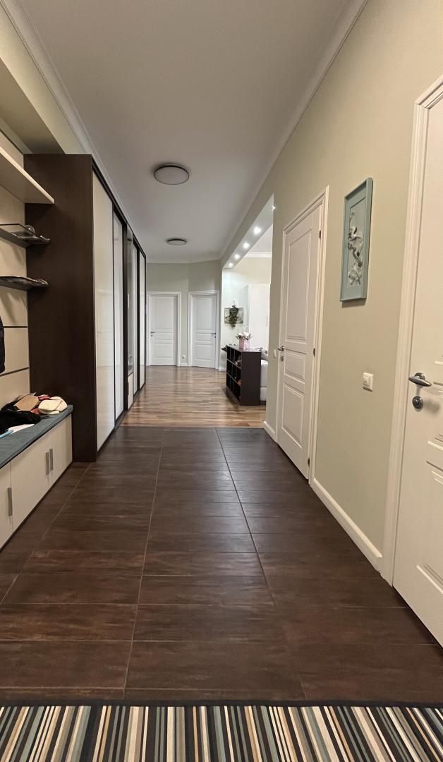 Ремонт делали для себя, в отделке использованы дорогие и качественные материалы паркетная доска американский орех, эмалированные двери Italon (Италия), экологичные бумажные обои Anaglypta (Англия). Во всех комнатах установлены кондиционеры Daikin(Япония), кухня Venetto Cucine (Италия) с техникой Neff, стол и стулья BoConcept (Дания), диван раскладной, кровать 180 с подъемным механизмом Estetica, шкафы мебельное ателье MrDoors, спальня Parra Mebel.
